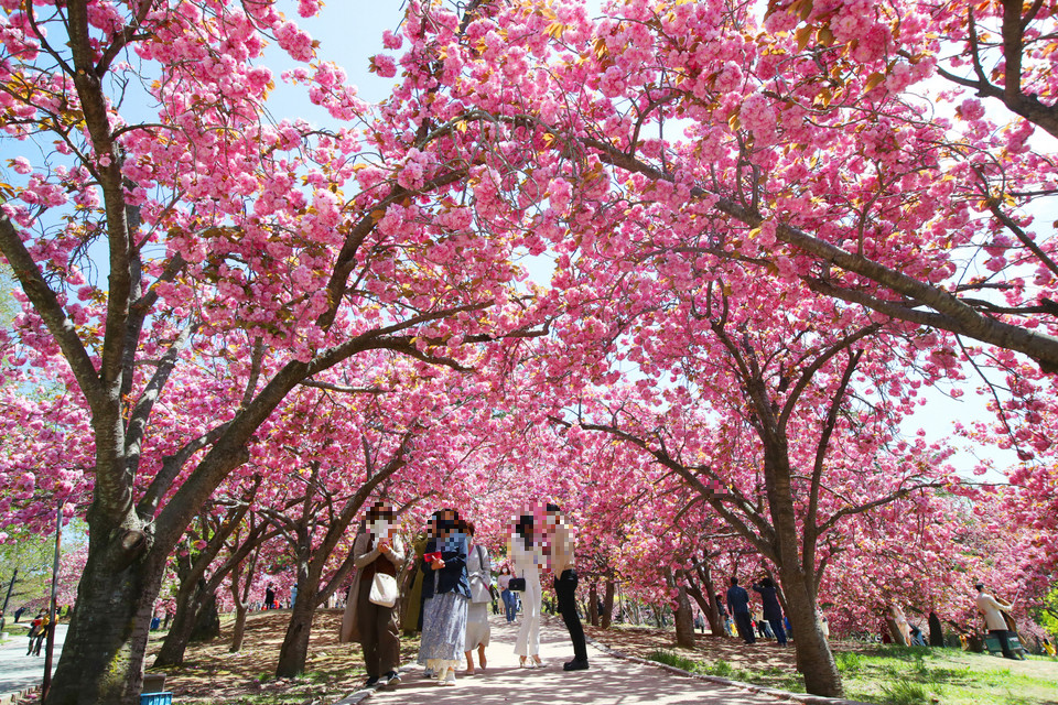 포토존에서는 몽글몽글하게 핀 겹벚꽃과 함께 사진을 찍을 수 있습니다.