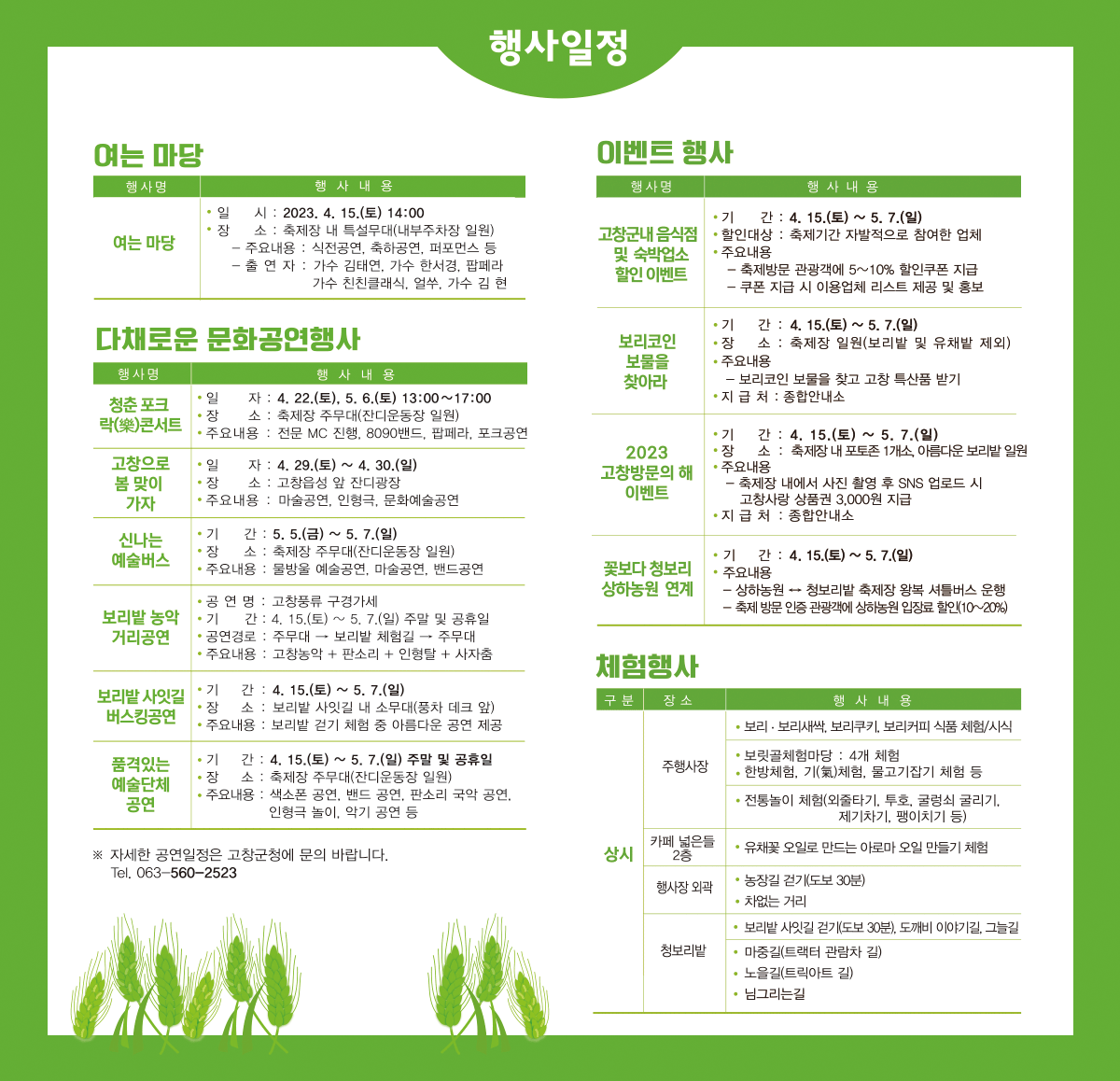 고창 청보리밭 축제 문화공연 & 프로그램