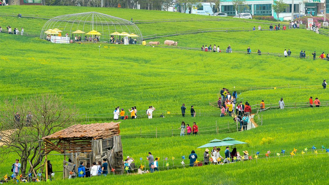 1.5km의 차없는 거리를 조성하여 친환경 청보리밭을 찾은 관광객에게 탁 트인 청보리밭의 정취를 느낄 수 있는 힐링 공간을 마련하였습니다.