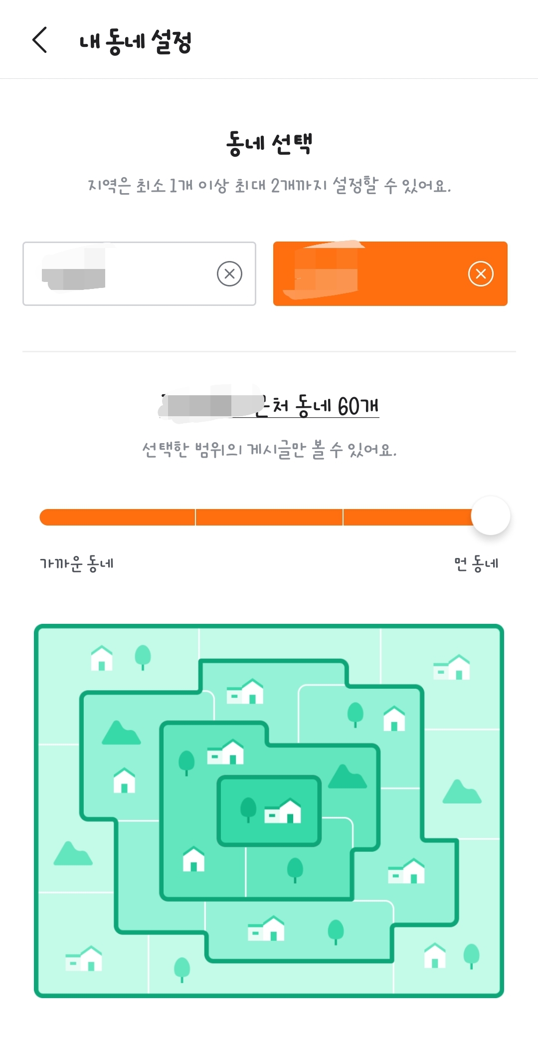 2. 지역을 등록하고 대충 아무 지역이나 찍어서 ‘근처 동네’까지 범위를 넓혀주게 됩니다.