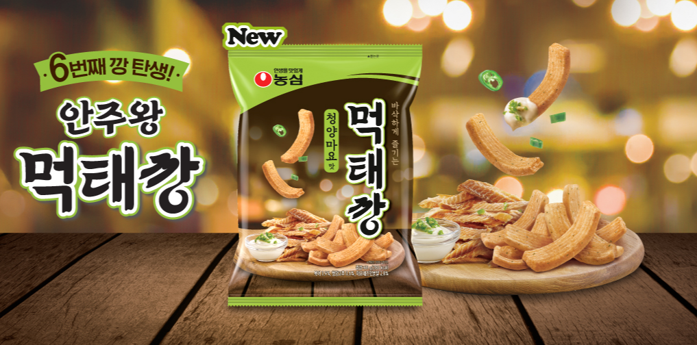 먹태깡은 농심의 신제품으로, 맥주 안주로 인기가 많은 먹태의 맛을 접목한 과자입니다.