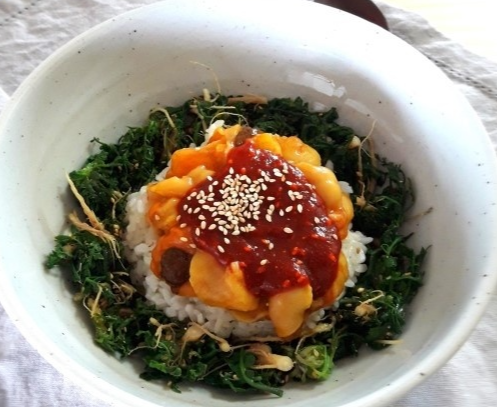 봄나물 멍게 비빔밥은 봄나물과 멍게를 곁들인 건강한 비빔밥입니다.
