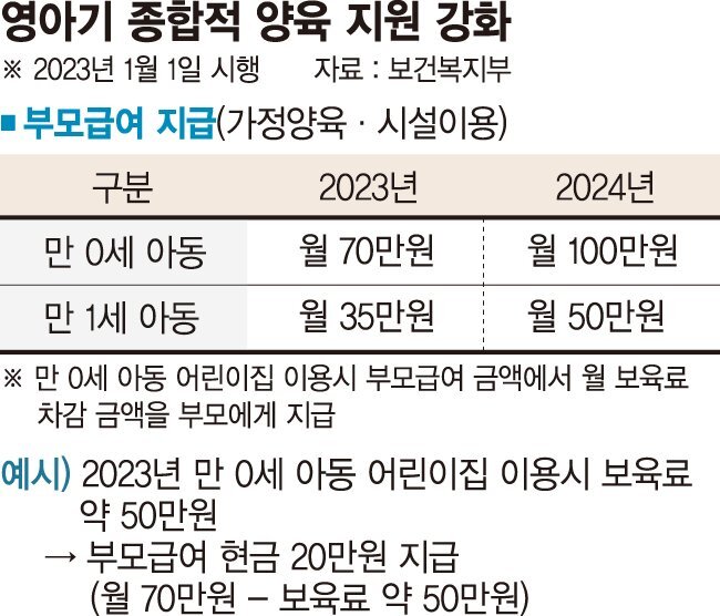 한편 보건복지부는 내년에 부모급여를 만 0세는 100만 원, 만 1세는 50만 원으로 올리는 방안을 추진하고 있다고 합니다.