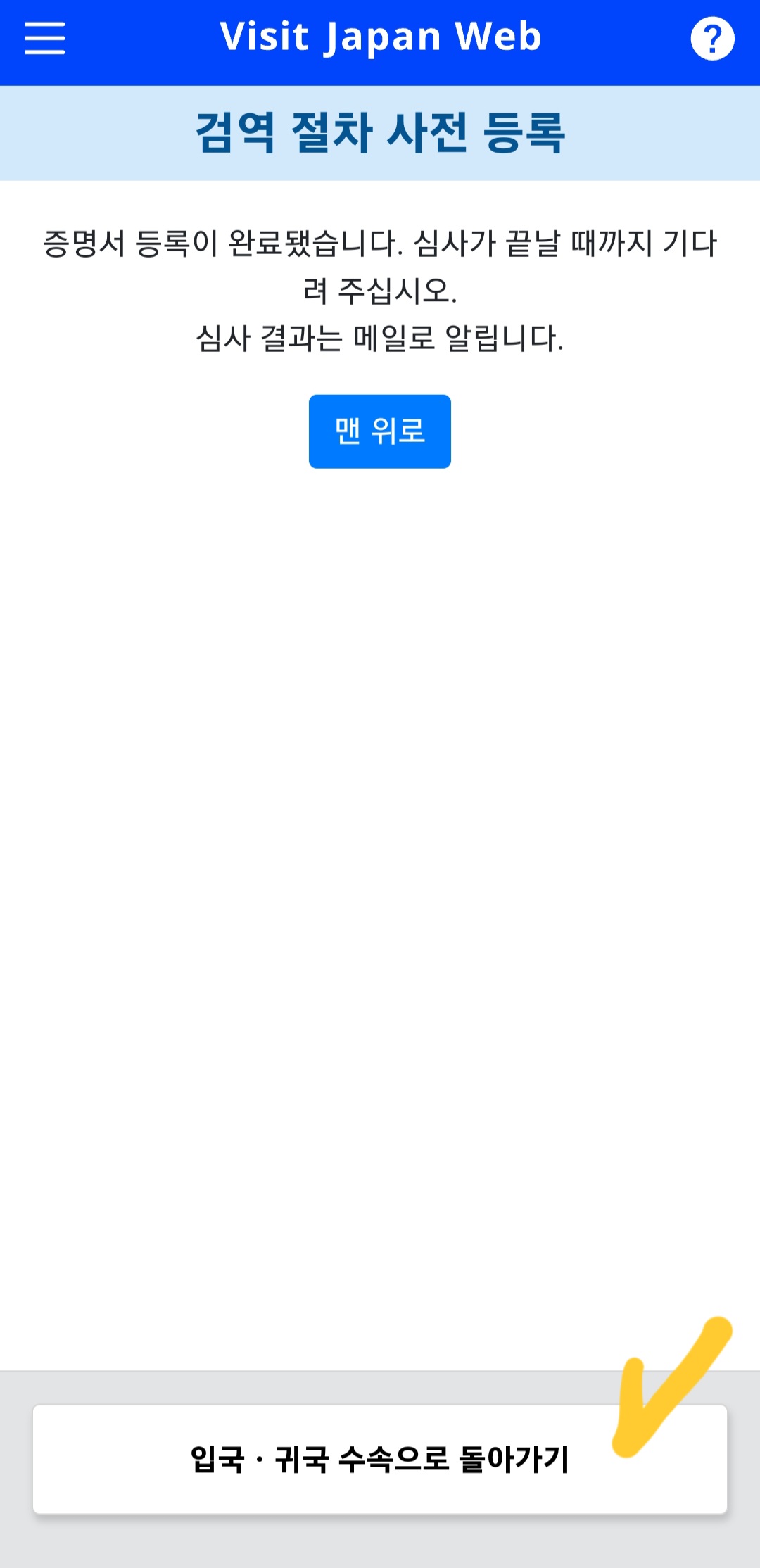 검역 절차 확인 메일을 받으면 일본 입국에 관한 모든 것이 준비되었으니
