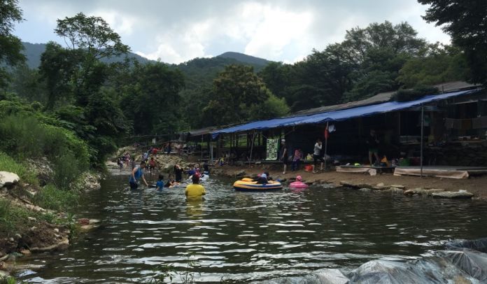 야영장 옆 계곡뿐 아니라 물이 모인 곳곳에 놀기 좋은 물놀이장이 있습니다. 텐트 철수하고 계곡에 한번, 유안청 폭포 다녀오고 또 계곡, 매점에서 음료수 사 먹고 또 계곡.