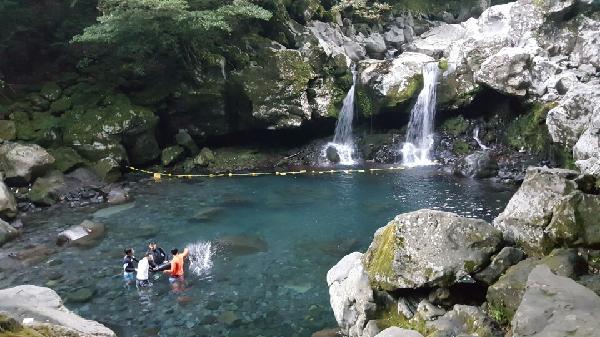 두 개의 물줄기가 떨어지는 모양을 보고 원앙폭포라 이름 붙였다고 합니다. 바라만 보아도 좋은 곳이지만, 물놀이도 가능한 지역이라 한라산에서 내려오는 차고 깨끗한 물에 직접 몸을 담글 수 있습니다.