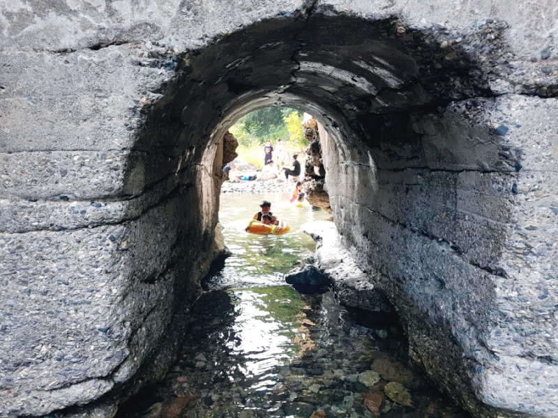 깨끗하고 푸른 계곡물과 독특한 성벽 모양의 터널이 인상적인 포토존입니다. 한여름에도 얼음장처럼 차가운 수온을 자랑하니 해가 쨍쨍한 날 방문하는 것을 추천합니다.