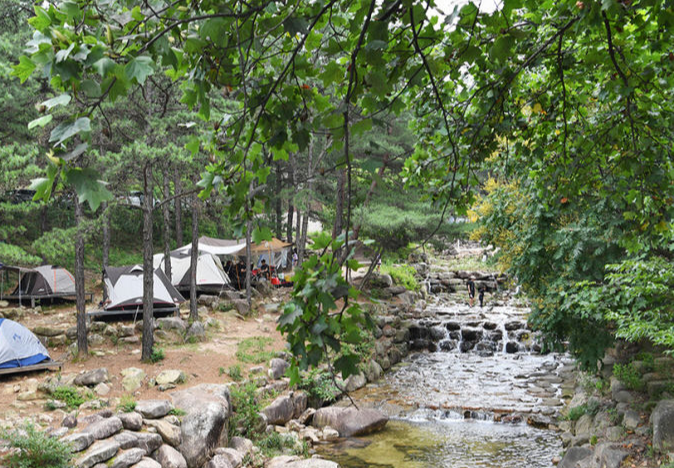 계곡 근처에는 텐트를 칠 수 있는 공간도 있어 캠핑을 즐기는 것도 좋습니다.