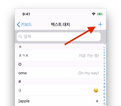 아이폰 텍스트 대치는 사용자가 지정 가능한 방식으로 기본 키보드를 통해 본인만의 필요한 단축어를 활용할 수 있는 방식입니다!