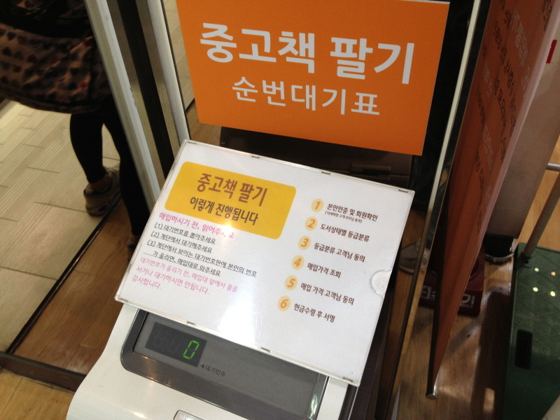 2. 알아둔 알라딘 중고서점에 방문하면 중고책을 팔기위한 번호표를 뽑게 됩니다.