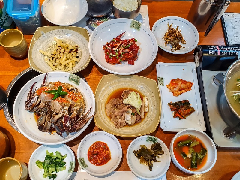 꽃돌게장 1번가는 게장 외에도 회덮밥과 회국수 등 다른 메뉴도 있으며, 소스와 반찬을 원하는 대로 선택할 수 있습니다.