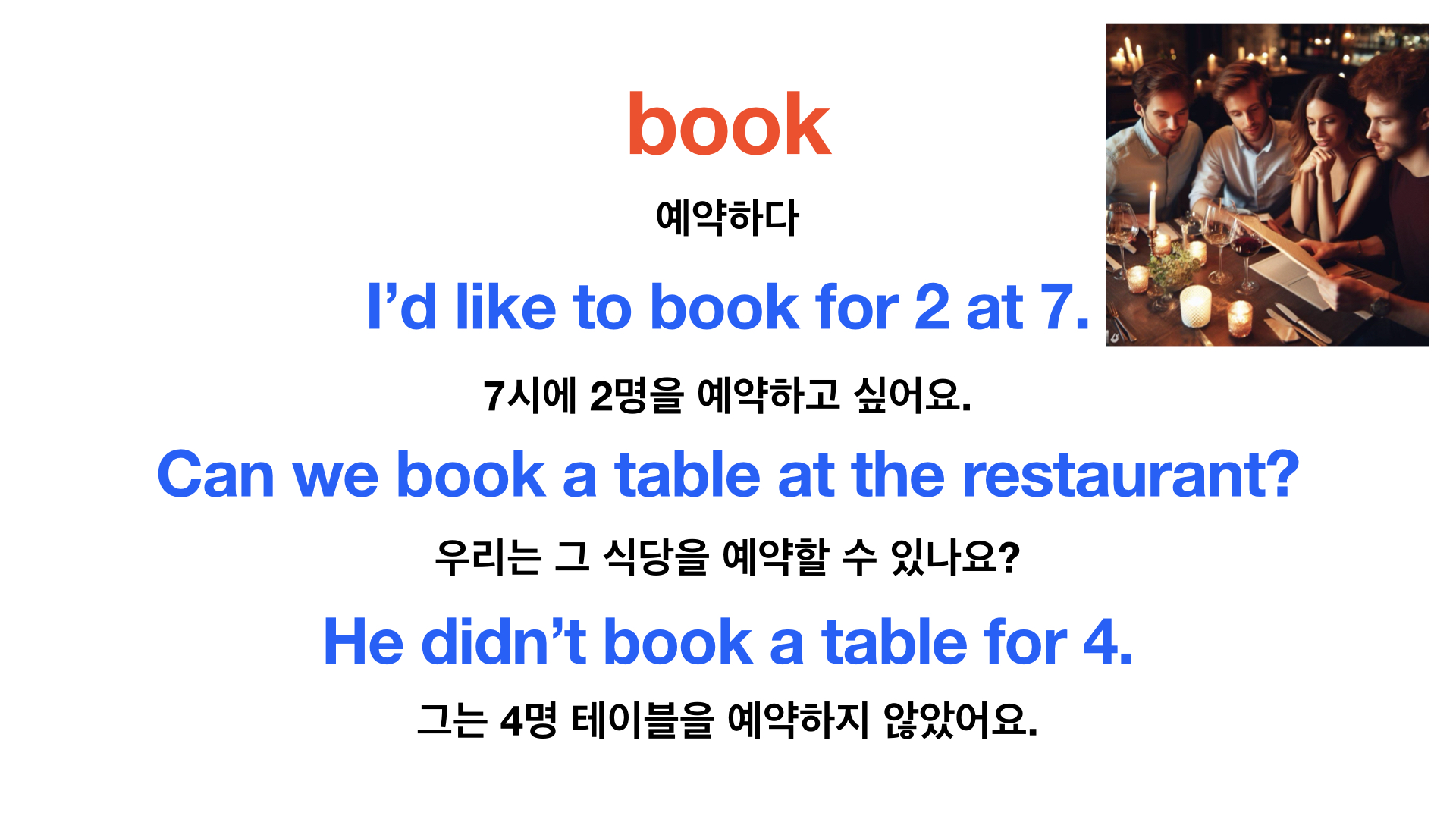 식당에서 쓰는 생활영어 phrasal verbs 구동사 20문장과 그활용