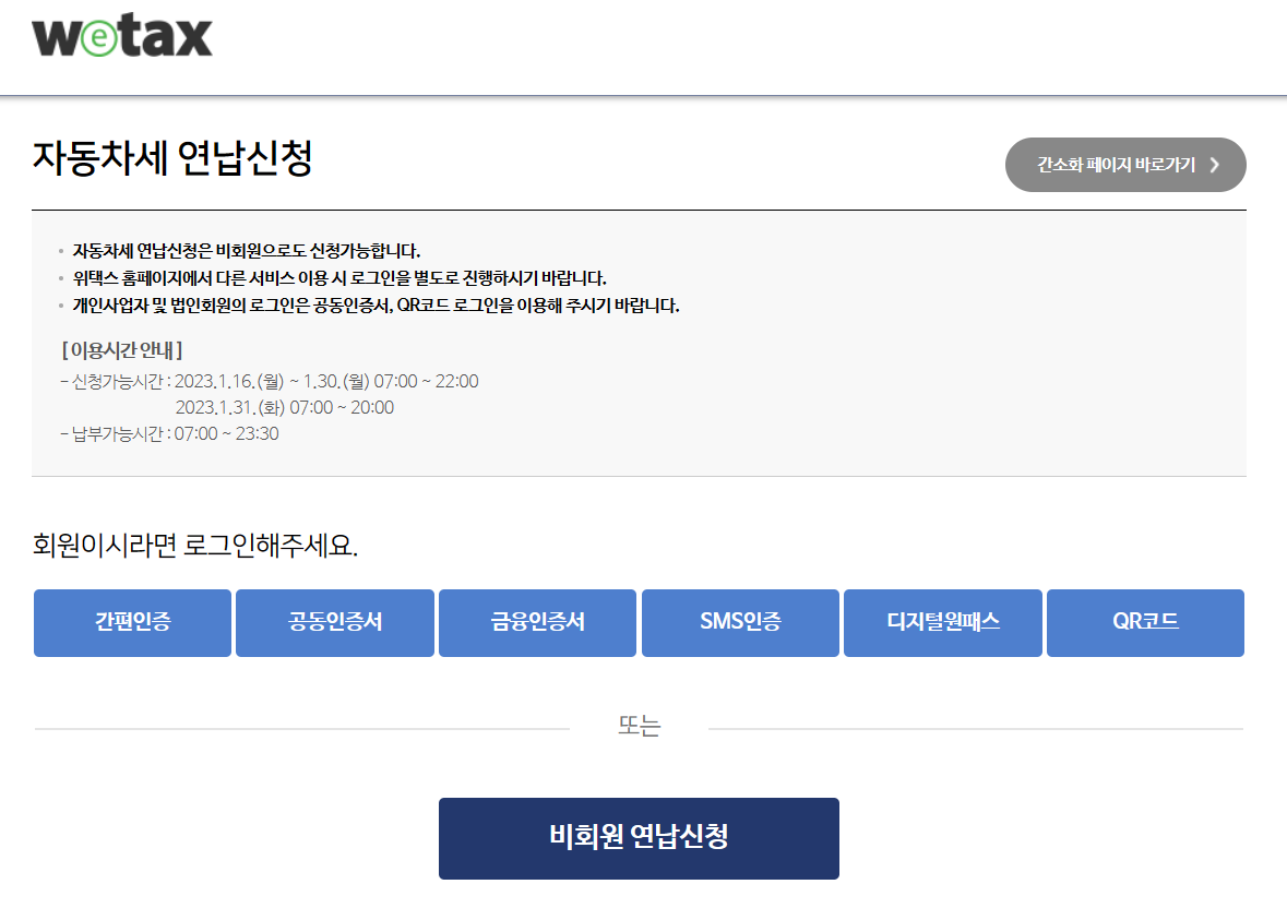 -비회원인 경우: 전체메뉴 → 부가서비스 → 자동차세 연납 신청