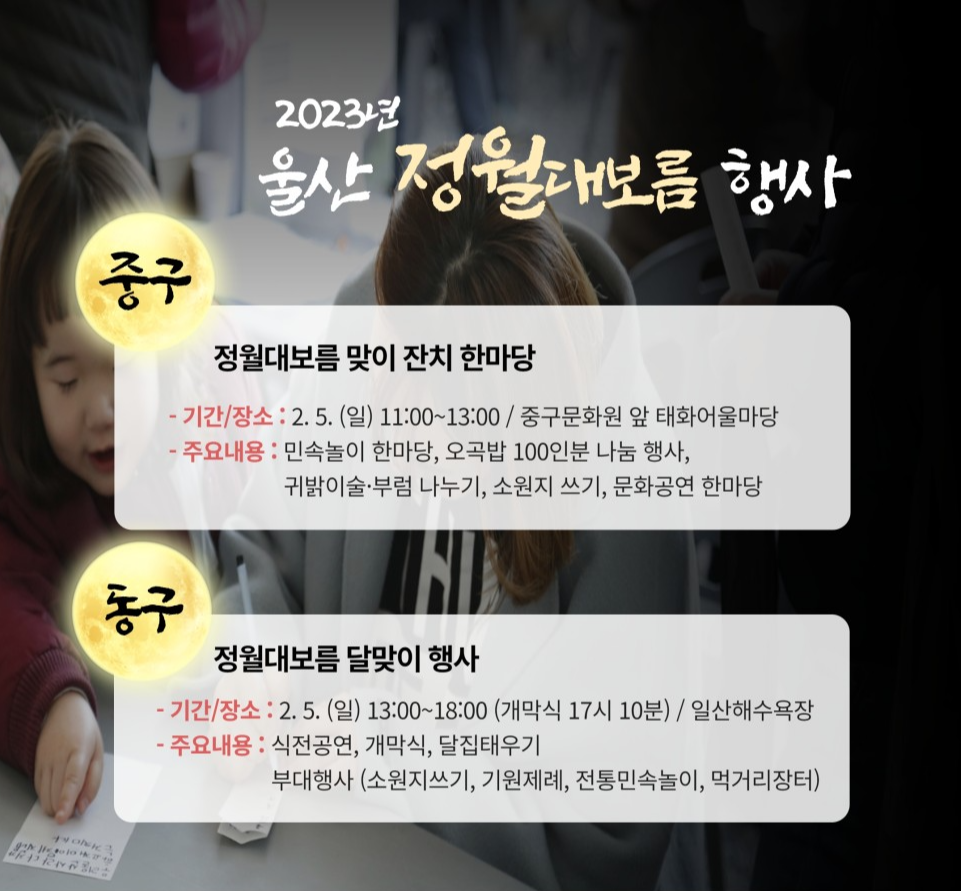 2023년 정월대보름은 오는 2월 5일 일요일입니다.