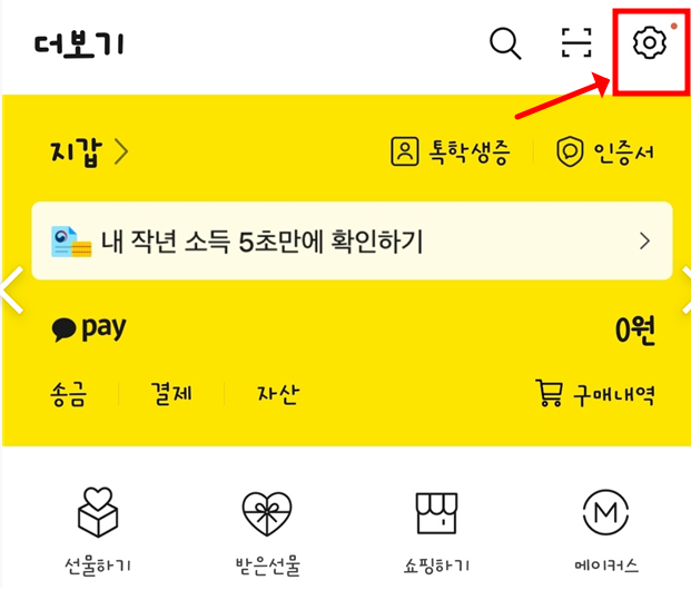 2. 오른쪽 상단의 톱니바퀴 모양의 설정 버튼을 누릅니다.