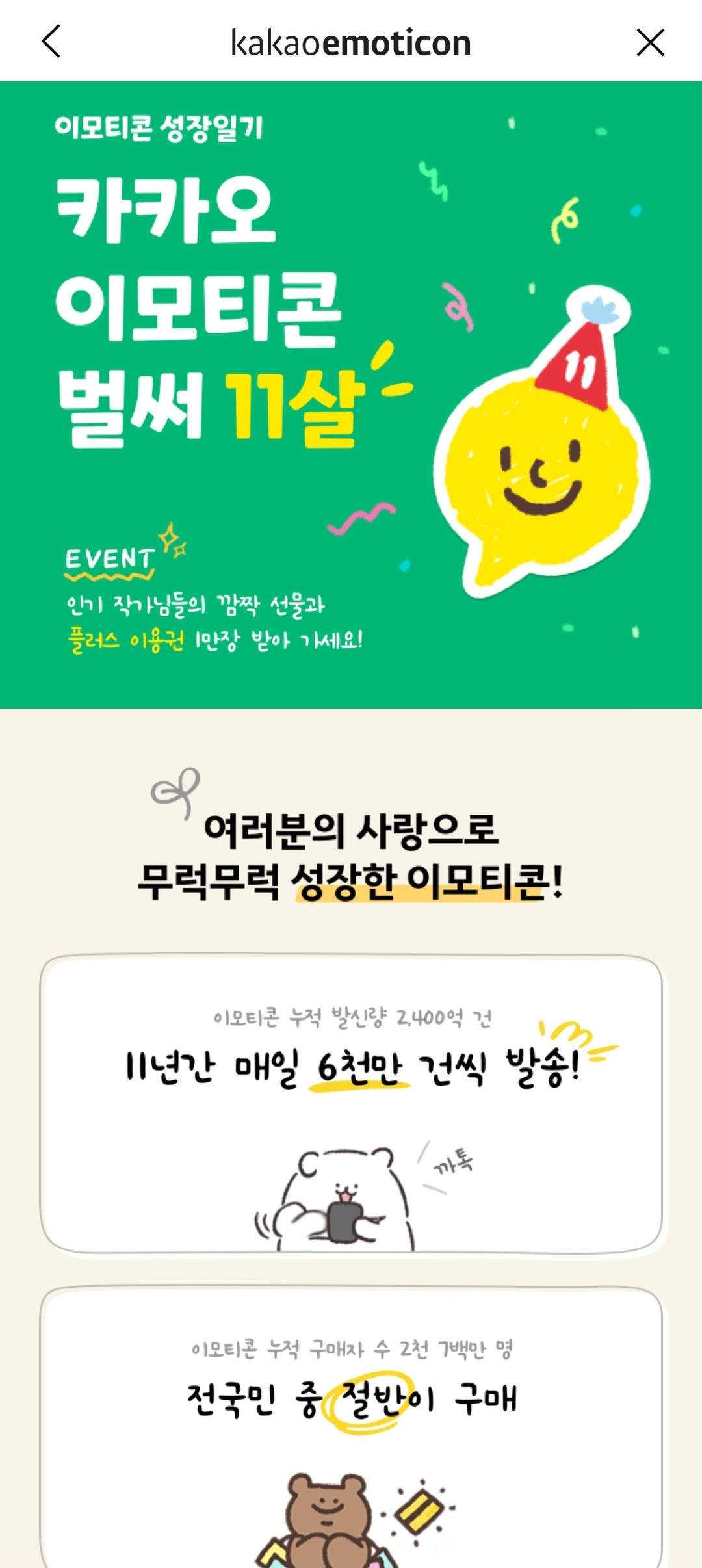 벌써 카카오톡 이모티콘이 나농ㄴ지 11년이나 되었다고 하는군요.