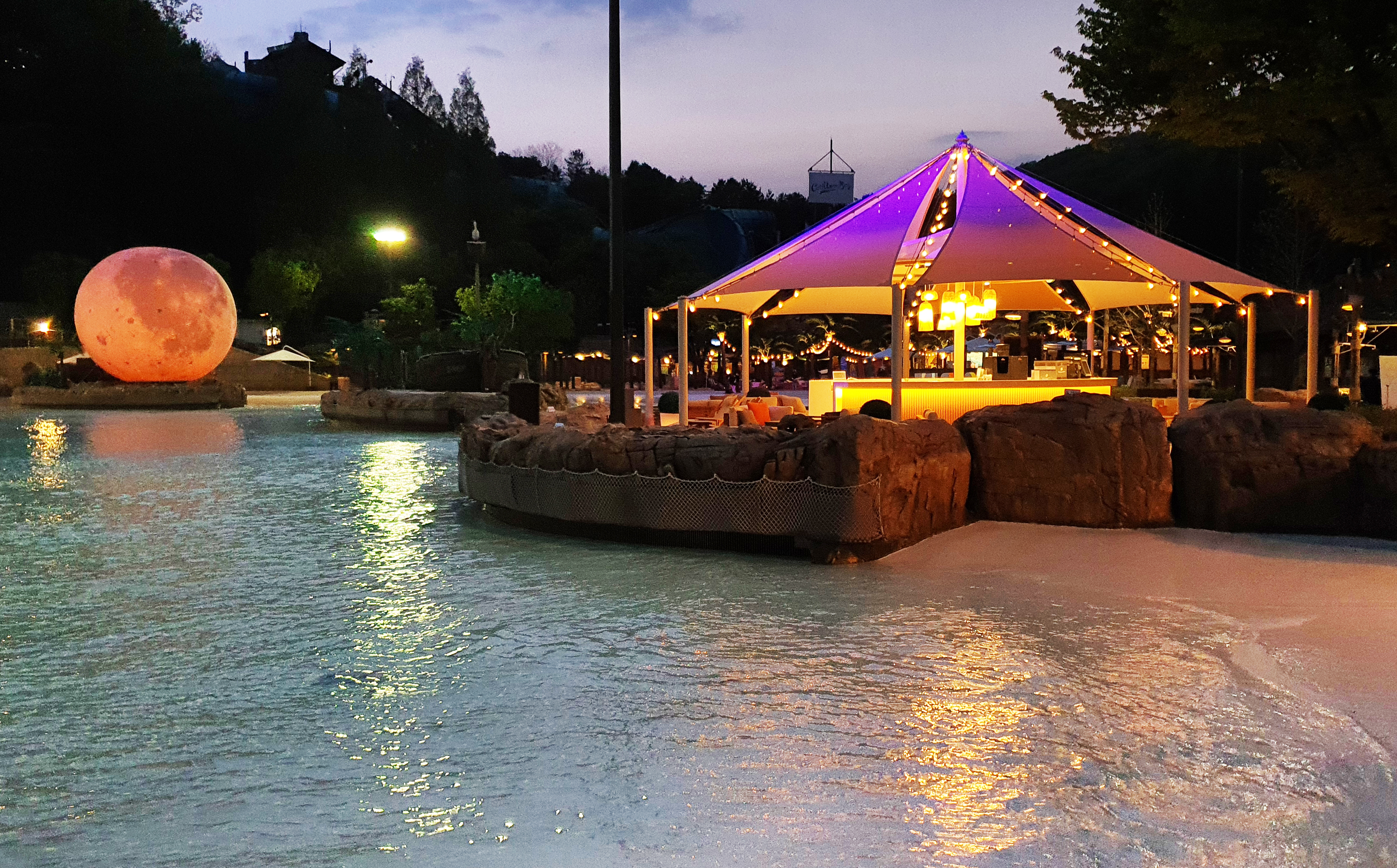 파도풀에 있는 지름 10m 크기의 거대한 보름달 조형물과 중앙에 알록달록한 마르카르베 레터링은 대표적인 포토존입니다.