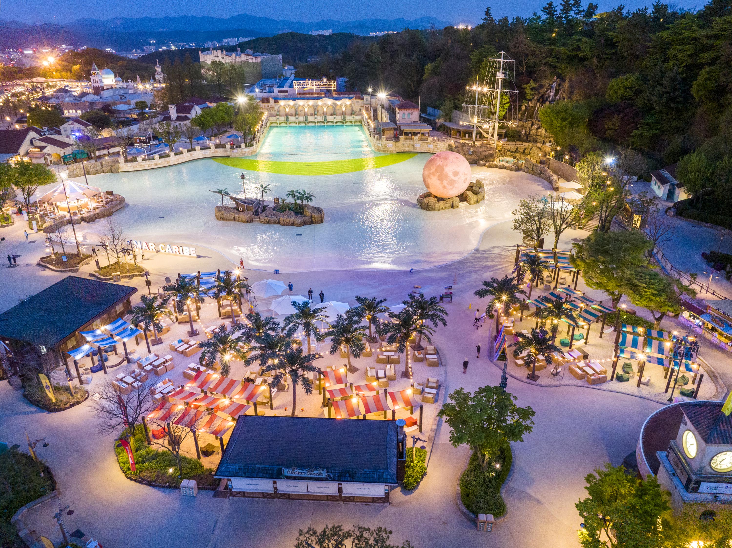 이곳은 캐리비안베이에서 봄과 가을에만 한 달간 운영하는 팝업 카페로, 하얗게 부서지는 파도와 모래사장이 펼쳐지는 카리브 해양 휴양지의 분위기를 느낄 수 있습니다.