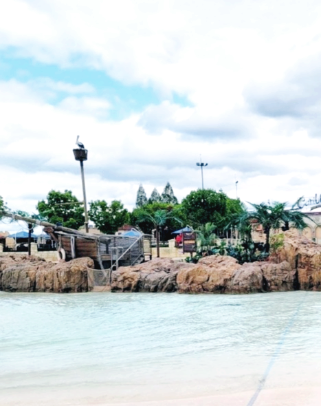 파도풀은 하얗게 부서지는 파도를 연출하며, 샤워시설은 주변에 곳곳에 설치되어 있습니다.