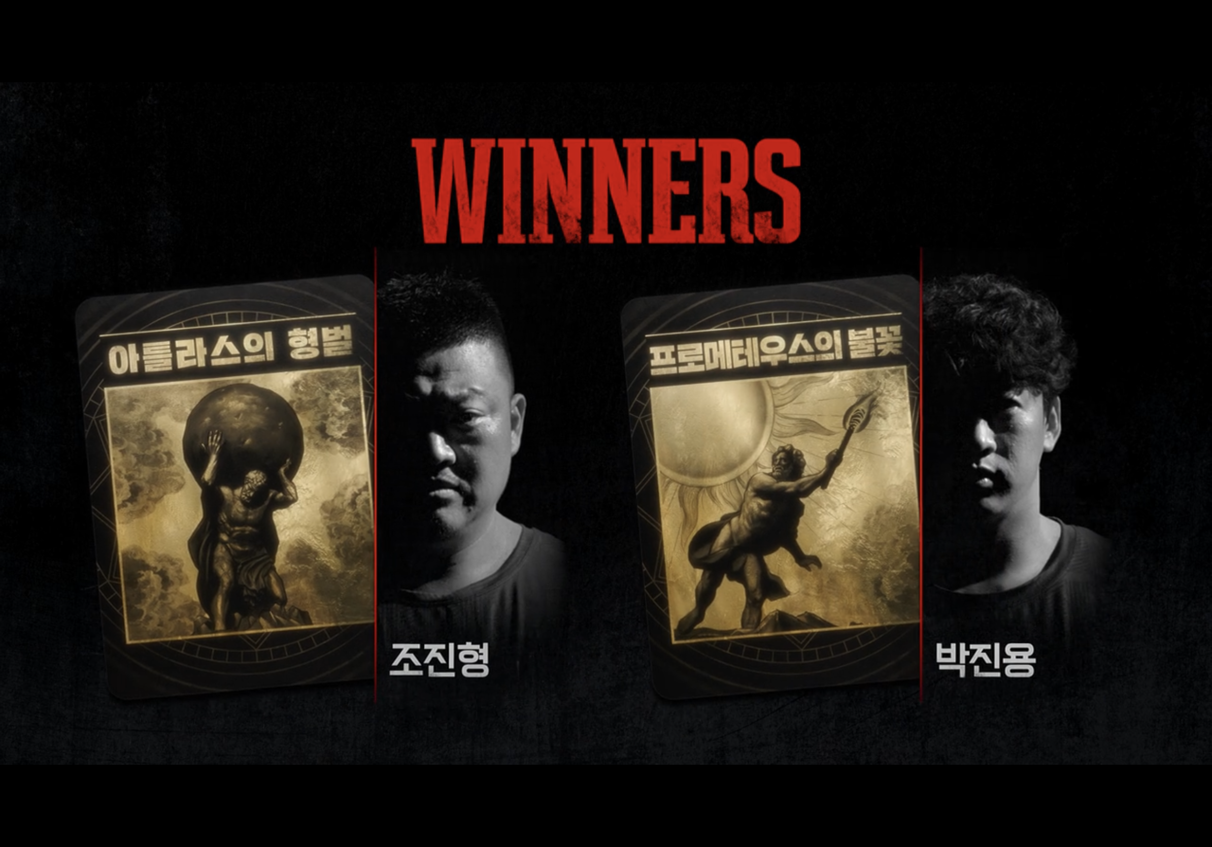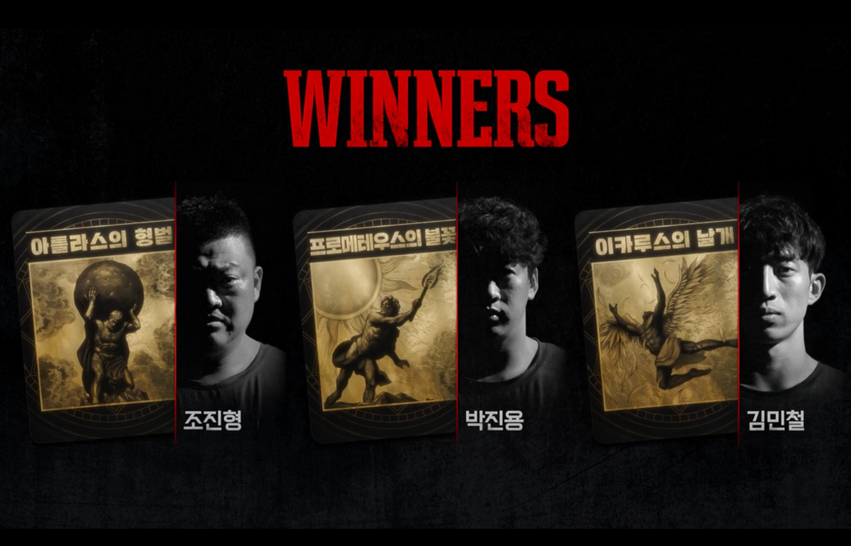 피지컬 100 8화에서는 결승 진출자를 가리기 위해 고대 신화에서 고안한 종목 5가지를 각 조의 선수들이 참여시킵니다.
