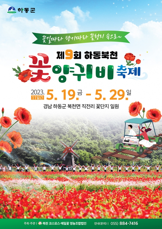 5월 19일부터 29일까지 열리는 이 축제는 전국 최대 면적의 경관작물 재배로 유명한 하동 북천의 봄 축제로, 1억 송이의 꽃양귀비가 펼치는 환상적인 꽃밭을 감상할 수 있습니다.