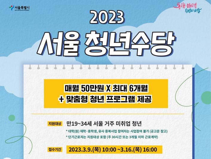 2023 서울 청년수당 1차모집이 시작되었습니다. 서울 청년수당 지원대상, 신청방법, 지원내용 등에 대해 알아보겠습니다.