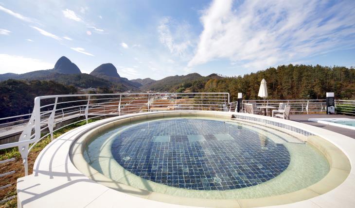 이곳의 옥상 하늘정원의 노천풀은 진안 마이산의 거대한 두 암봉을 바라보며 노천을 즐기는 것은 꼭! 체험해야합니다!