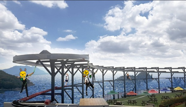 오션 스카이워크 이용요금은 8,000원이며 출발지로 돌아오는 집라인도 포함된다네요. 키 135cm 이상 이용가능합니다.