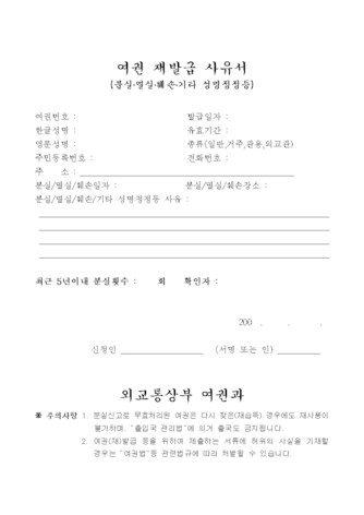 여권의 분실, 훼손 등으로 재발급이 필요한 경우