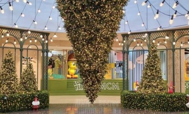 외벽 구조물 전체를 크리스마스트리와 조명으로 꾸며두었으며 쇼윈도를 설치했습니다.