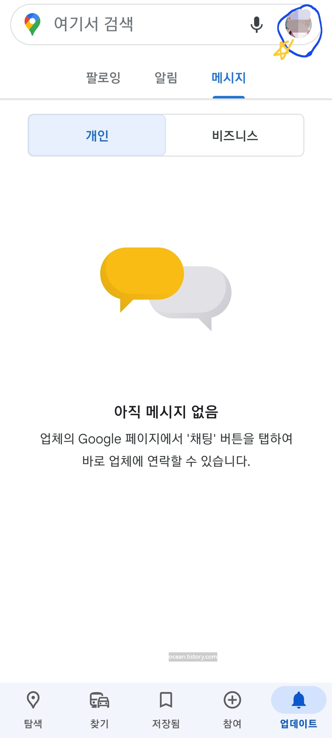 1. 구글지도 앱을 실행하고 오른쪽 상단의 로그인 아이콘을 누르세요.