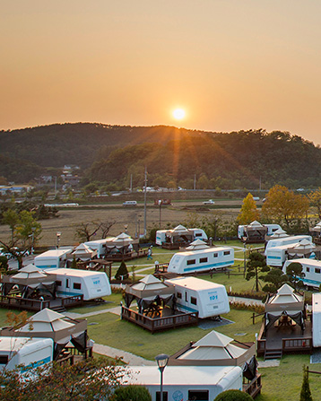 파라다이스스파도고는 사계절 내내 운영하는 온수풀과 온천 유수풀이 있고, 또한 카라반 운영의 규모가 무려 50대나 됩니다.