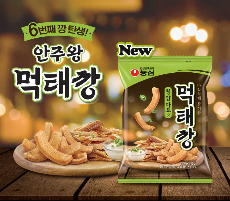 먹태깡은 농심의 신제품으로, 맥주 안주로 인기가 많은 먹태의 맛을 접목한 과자입니다.