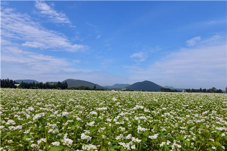 4월에는 색색의 튤립이, 6월에는 라벤더와 수국이, 8월에는 맨드라미와 메밀이, 11월에는 국화가 농장을 장식합니다.
