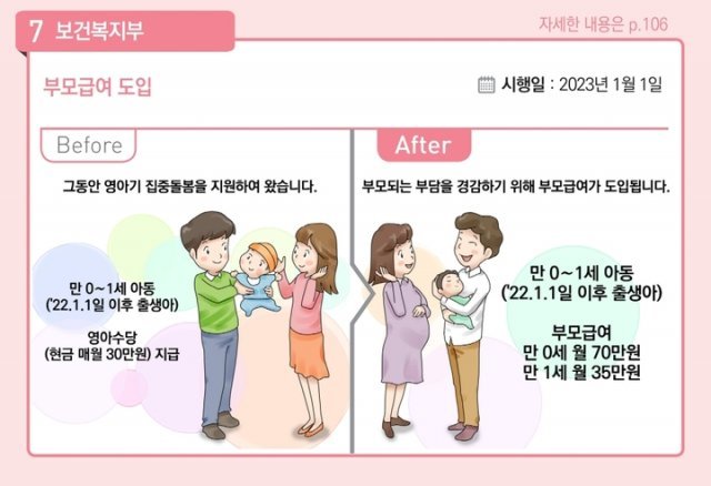 한편 보건복지부는 내년에 부모급여를 만 0세는 100만 원, 만 1세는 50만 원으로 올리는 방안을 추진하고 있다고 합니다.