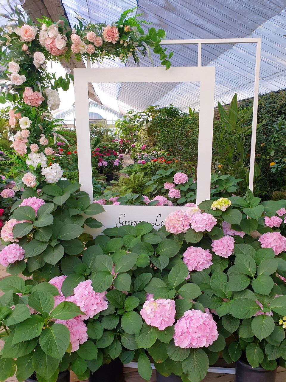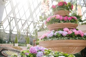 식물원에서는 화분에 담긴 알록달록한 수국들을 보고, 카페에서는 시원한 음료를 마시며 휴식을 취할 수 있습니다.