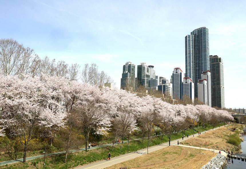 - 양재천은 강남구 대치동에서 시작하여 서초구 방배동까지 이어지는 천으로, 약 15km의 긴 벚꽃길입니다.