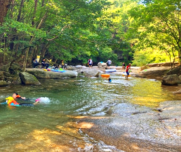 수심이 얕아 아이들에게도 인기가 좋은 계곡이며, 주차장, 화장실, 매점 등의 편의시설도 갖춰져 있습니다. 멍하니 물 위를 동동 떠다니는 것만으로도 제법 본격적인 힐링이 될 것입니다.