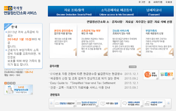 연말정산 간소화서비스 자료 일괄 제공 서비스