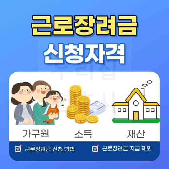 근로장려금은 가구원의 요건, 소득요건, 재산요건 등을 모두 충족해야 장려금을 신청할 수 있고 제외 대상이 아니어야 신청할 수 있습니다.